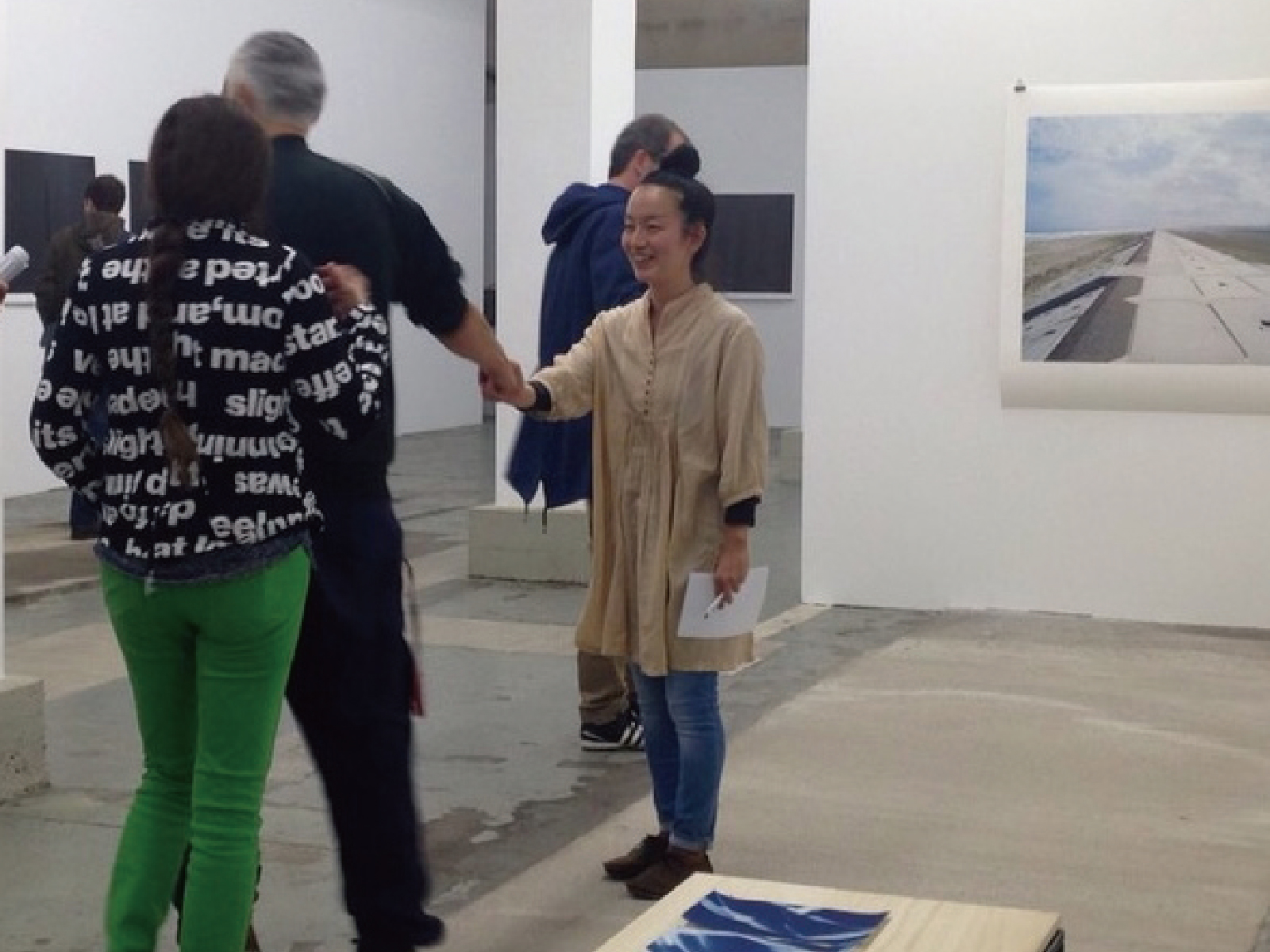 留学していたドイツ、ライプツィヒ視覚芸術大学での最終審査が終わり、審査員の教授と握手をしている様子。