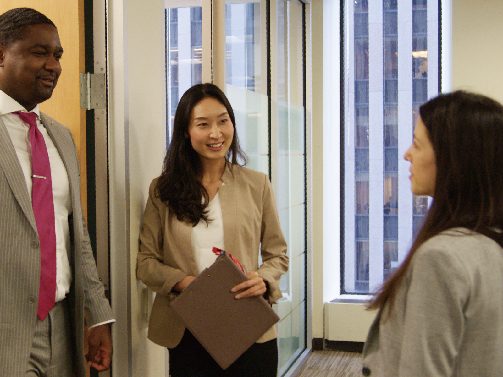 - Q. この仕事を目指した理由は?銀行では、企業にお金を貸して、その企業のビジネスの発展に立ち会うダイナミズムが味わえます。大学で就職活動をしているとき、「お客様のビジネス成長とともに、自行も成長することができる」という仕組みに強く惹かれました。海外を志望したのは、父の仕事環境の影響で外国の方との交流や国際的なビジネス環境に抵抗がなかったから。幼少から英語にも触れられ、大学で本格的に勉強できたことも理由のひとつです。