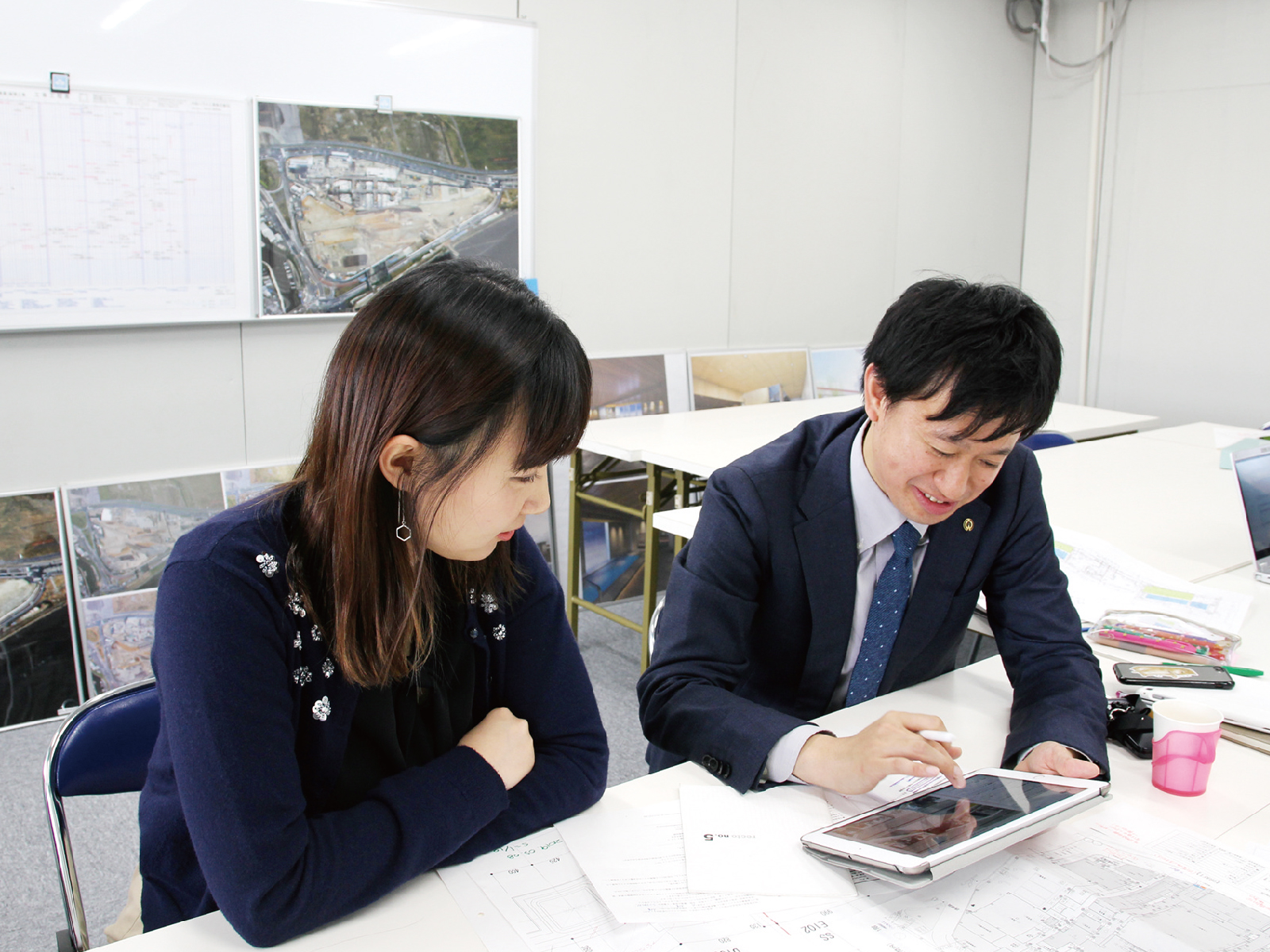 - Q. どんな仕事をしていますか?オフィスや研究所、店舗、共同住宅から工場倉庫まで幅広い建築物の設計を行います。お客様との打ち合わせのなかで建築部材の選定や間取りを決め、CADを使って設計図面を作成します。今は東京2020オリンピック・パラリンピック競技大会も見据えた「まちづくり」の真っ最中。私は社内のほかの建築士をはじめ、多彩な専門職の方々と協働し、ホテルや飲食店を併設した大型複合施設の設計に携わっています。現場に常駐しながら充実した毎日を送っています。