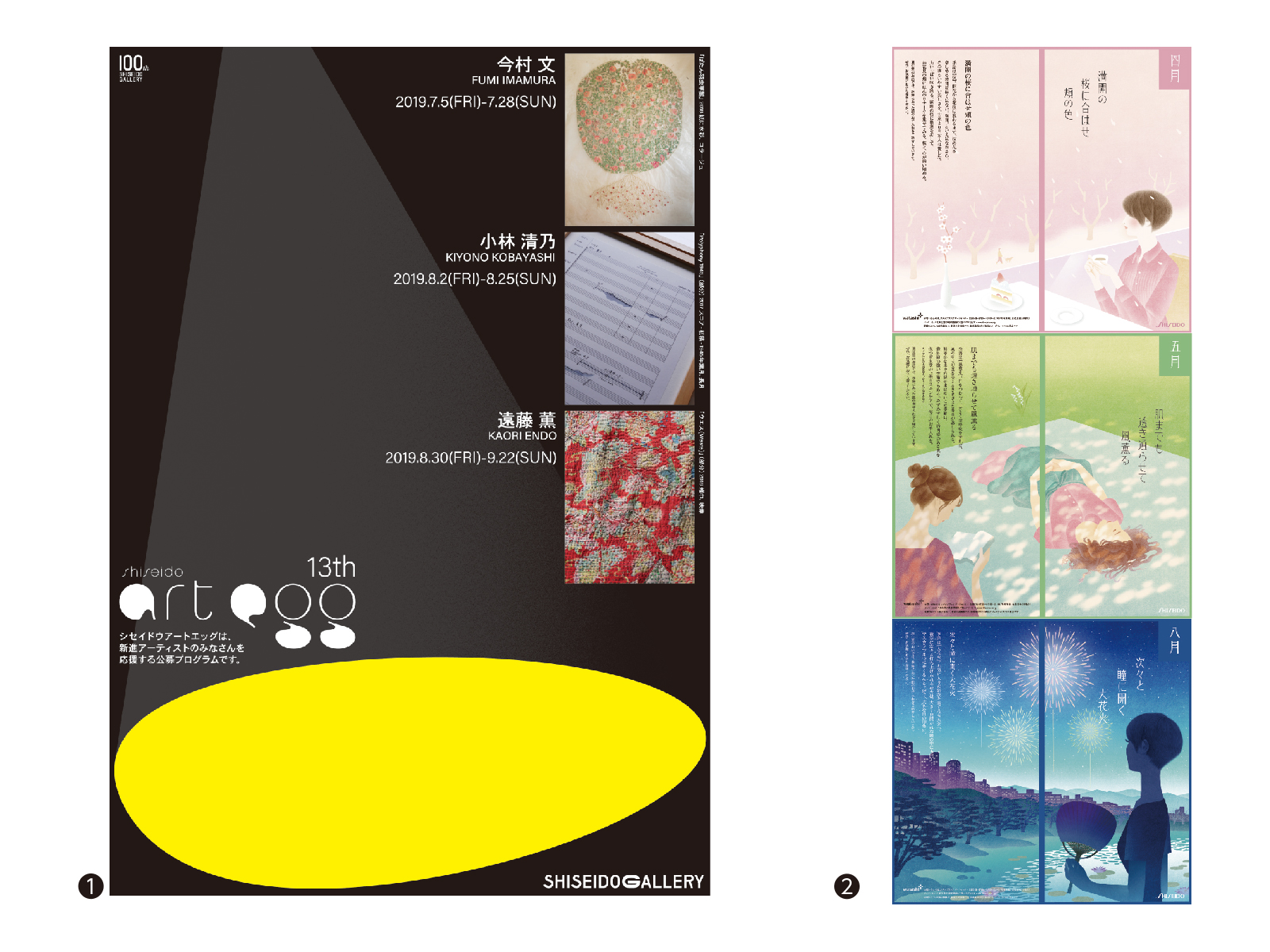 ❶SHISEIDOGALLERY開催「shiseido artegg展」/A4DM ❷資生堂ダイレクトメール/カバーデザイン